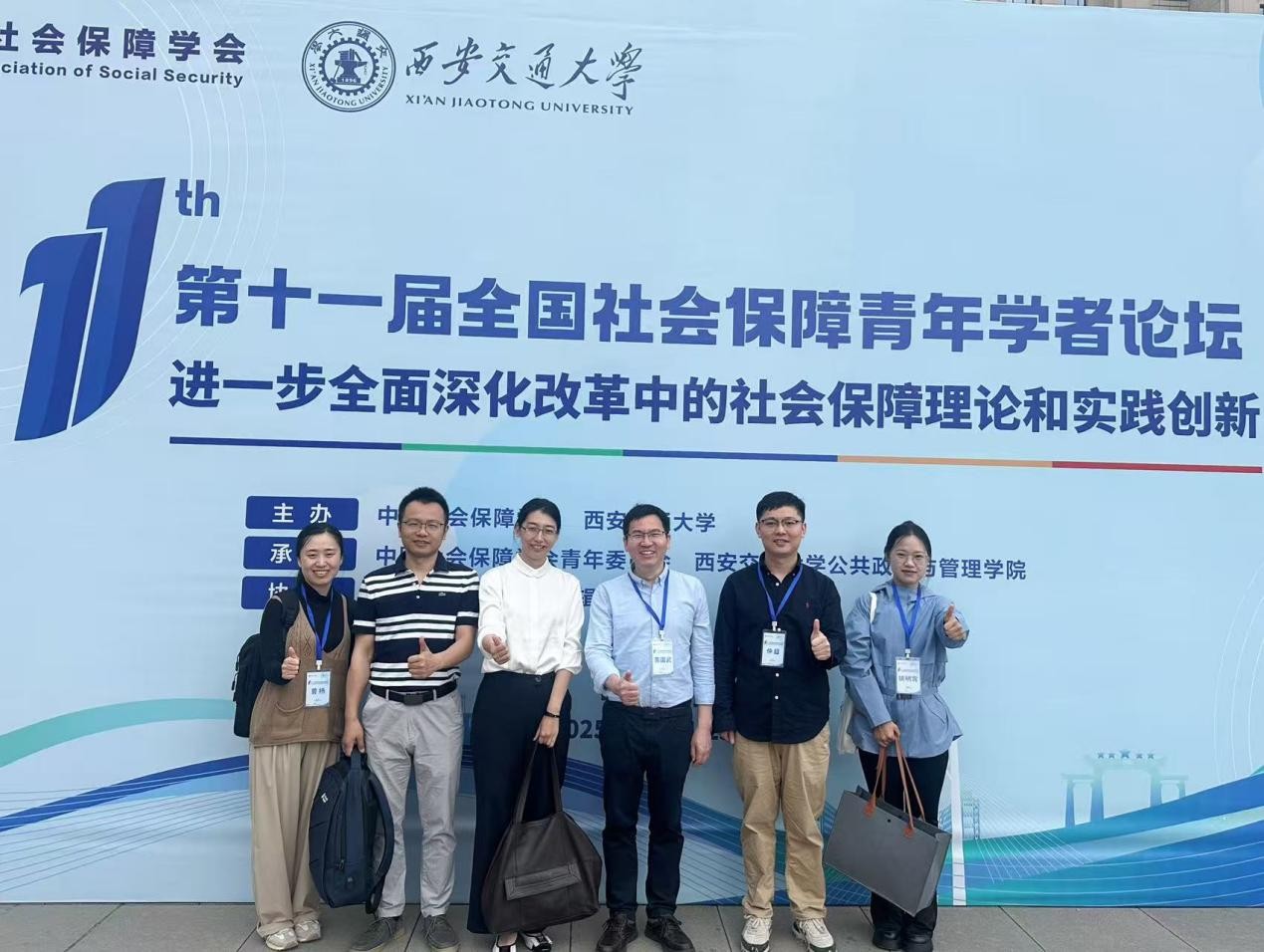 2025年5月25日,第十一届全国社会保障青年学者论坛在西安交通大学举办。本届论坛主题为“进一步全面深化改革中的社会保障理论和实践创新”,旨在增进青年学者团结协作,共同推动我国社会保障事业发展。十大买球官网劳动与社会保障系主任张浩淼教授、黄国武副教授、杨帆副教授、曹杨副教授、田益豪副教授和博士研究生姚明霄参会。在主论坛会议与各分论坛会议上,张浩淼教授进行了主旨报告,黄国武、田益豪、曹杨老师以及博士研究生姚明霄分别就各自研究领域进行了专题发言,与参会学者展开深入交流。