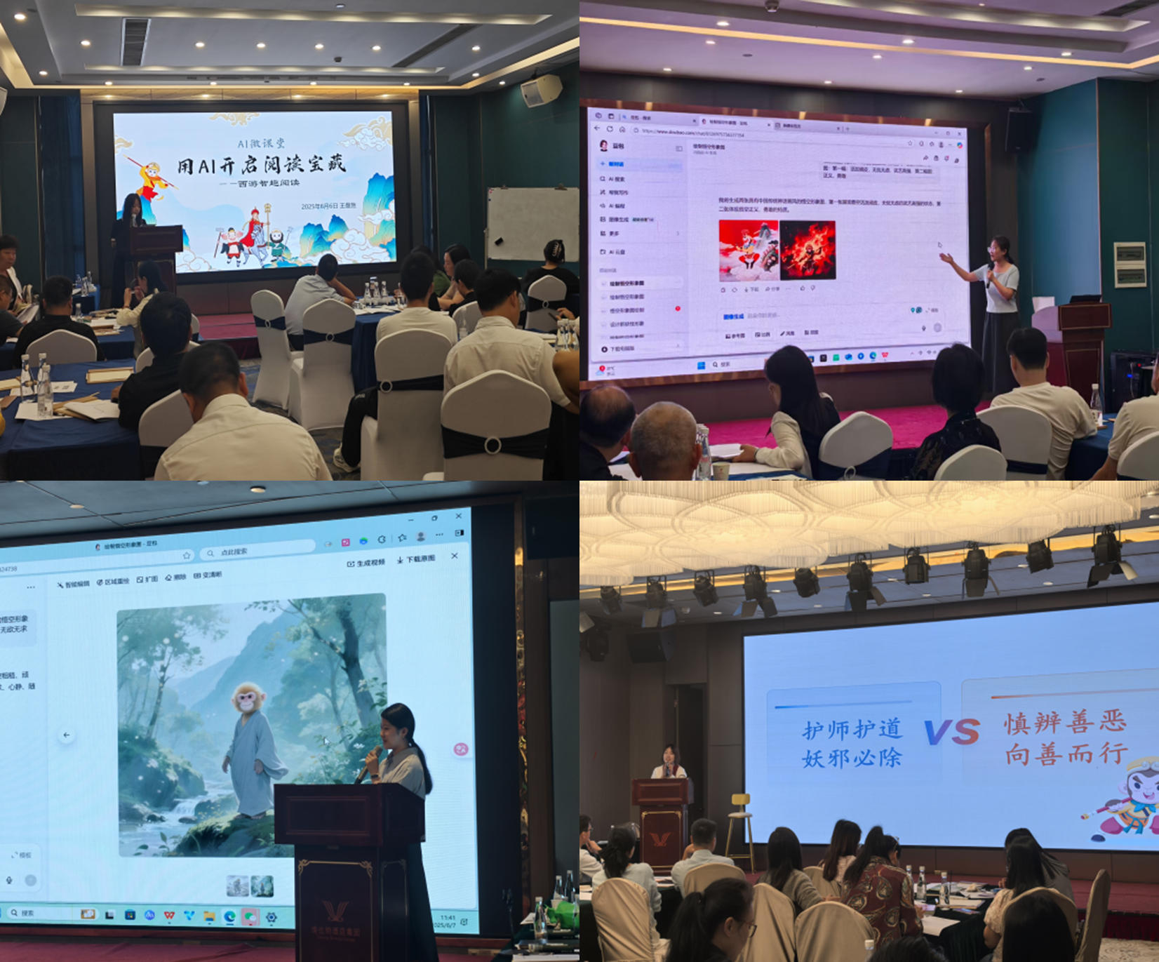 本次培训以“智启乡村,阅领未来,以智深耕,以行筑梦”为主题,结合AI赋能阅读的时代趋势,旨在整体提升乡村小学对校园书屋资源的利用能力,助力书香校园建设。培训以专题讲座、案例教学、实地参访及工作坊研讨等多种形式展开。专家团队紧扣校园书屋的“建、配、管、用”等核心环节,围绕书香校园整体规划、阅读课程设计、阅读活动策划等关键维度,与参训学员进行互动交流。期间,李桂华教授为校长班学员讲授题为《AI时代的深度阅读与能力建构》,博士研究生于泽源、硕士研究生王曼旌、闵芝菲、朱历娜分别为学员们献上了趣味横生的《用AI开启阅读宝藏》微课程。学员们在专家引领下积极共创书屋效能提升方案,通过跨校智慧碰撞与经验共享,拿出了能让“南网知行书屋”真正用起来、让孩子们多读书、爱读书的具体方案。