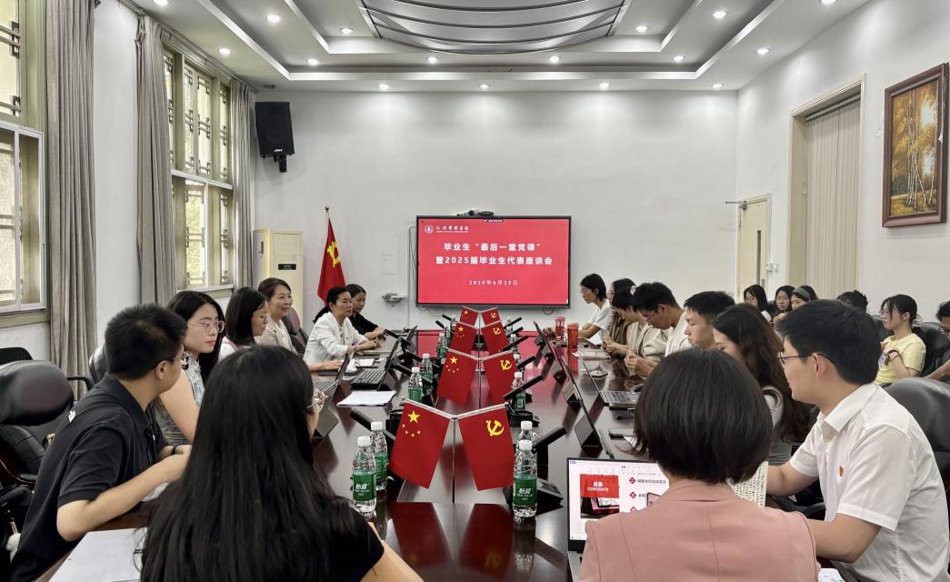 6月25日下午,十大买球的正规网站在萃文楼311会议室举行了2025届毕业生“毕业前最后一堂党课”暨毕业生代表座谈会。学院党委书记王彬、党委副书记兼纪委书记罗亚玲、党政办刘晓燕老师、毕业年级辅导员青杨媚和付亚南、2025届毕业生党员及毕业生代表参加了此次活动。