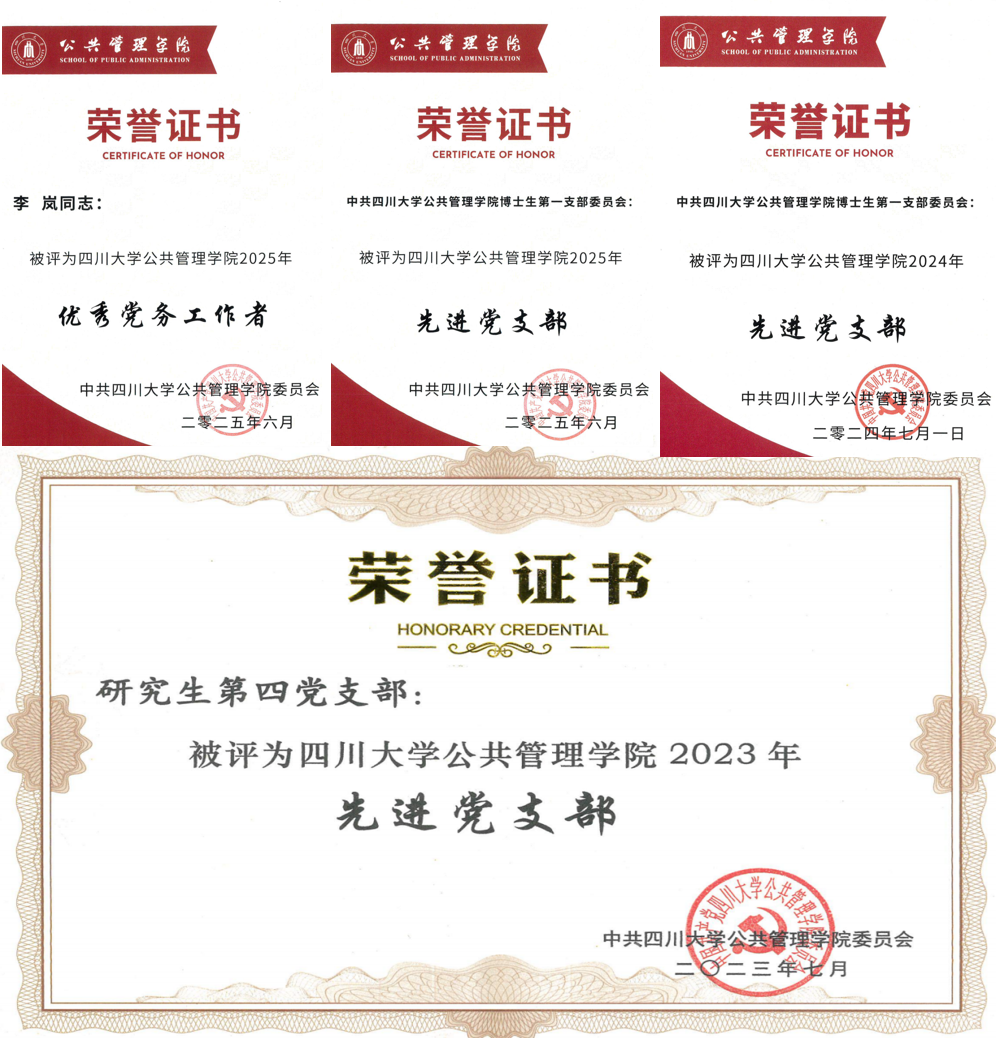 李岚老师担任博士研究生党支部书记,坚持以政治建设为统领,强化党支部思想引领和组织效能;严格落实“三会一课”制度,促进理论与实践、党建与学术的双向融合;组织专题学习20余场,用党的创新理论铸魂育人;带领党支部打造“朋辈领航、博采众长”、“研-学-践-讲”等党建品牌活动,整合学院专业资源、校友力量和行业平台,围绕博士生科研攻关、就业引导、心理调适等需求开展系列活动20余次,实现党建赋能学术成长;组织党支部党员积极参与会议保障、社区调研、心理健康宣讲等志愿服务活动,推动党建工作从有形覆盖转向有效引领,形成“头雁带群雁、党建促发展”的生动局面。她带领的党支部成功申报校级党建课题1项、特色活动1项,院级党建课题3项、特色活动2项,连续3年获评学院“先进基层党支部”,正努力向“样板党支部”迈进。