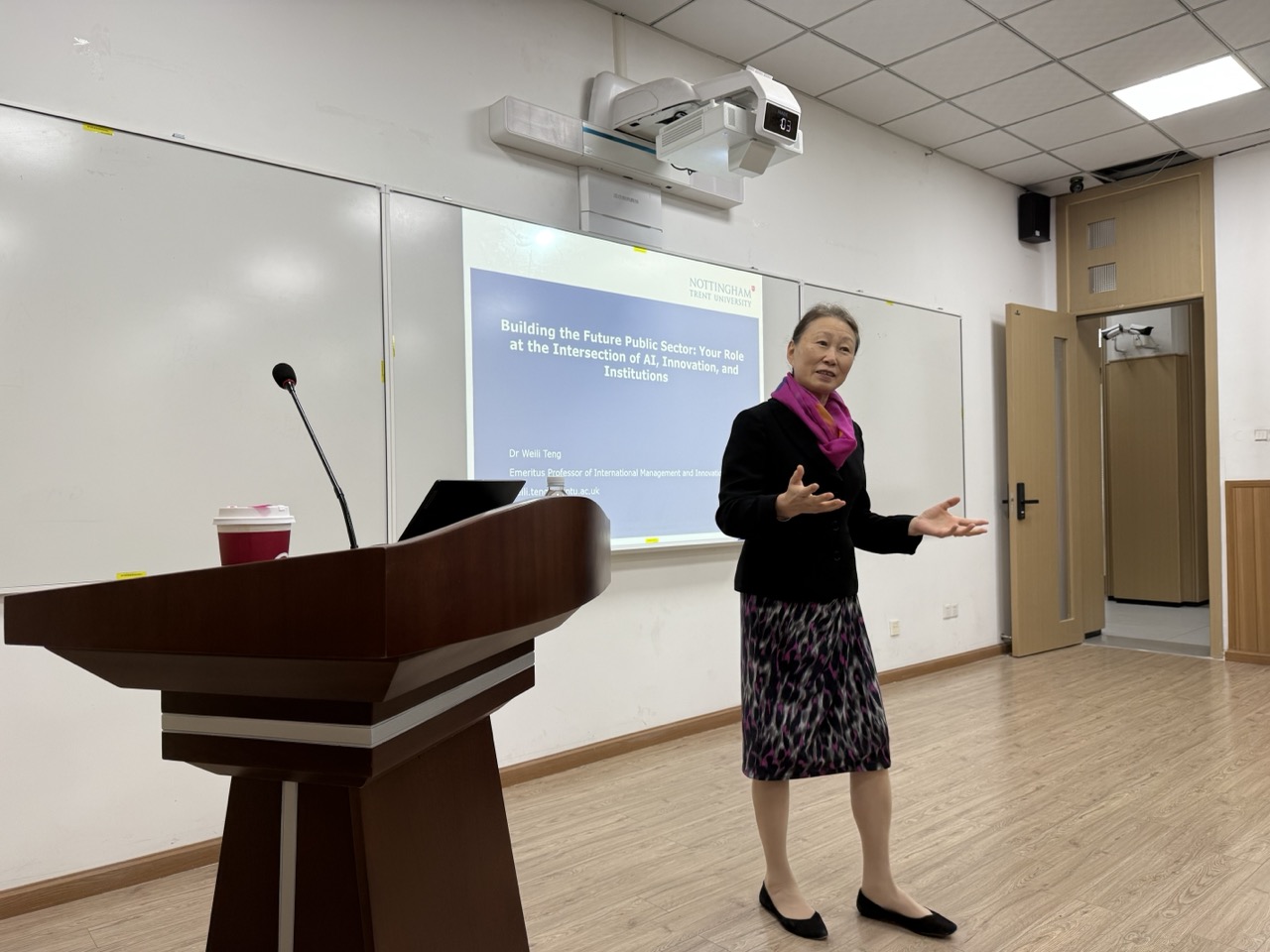 2025年11月7日下午,英国诺丁汉特伦特大学终身教授滕伟丽应邀做客十大买球官网“格致讲坛”和“社会学华西论坛”,于萃文楼105室发表了题为“制度、AI与人才:赋能公共服务数字化转型”的学术讲座。本次讲座由十大买球官网郑莉副教授主持,吸引了校内外师生及领域内学者四十余人参与。