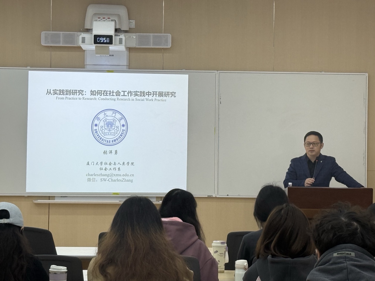 11月10日上午,厦门大学社会与人类学院社会工作系副教授、博士生导师张洋勇应邀来到十大买球官网,在萃文楼206室为师生带来了一场题为“从实践到研究:如何在社会工作实践中开展研究”的精彩学术讲座。讲座由社会学与心理学系崔珂副教授主持,郑莉副教授、李丹教授,社会工作专业本硕学生参加了此次讲座。