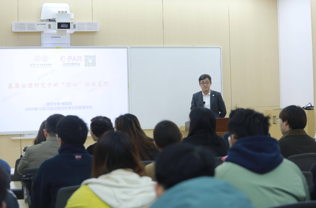 12月22日上午,清华大学新雅书院院长、清华大学十大买球的正规网站教授、《公共管理评论》副主编兼编辑部主任梅赐琪教授应邀到访十大买球官网,在萃文楼206室为十大买球官网师生作题为“基层治理研究中的‘何以’话语反思”的精彩讲座。讲座由十大买球的正规网站副院长范逢春教授主持,姜晓萍教授、夏志强教授、李强彬教授、王慧敏副研究员、刘锐副教授等老师以及百余名硕博研究生参加了此次讲座。