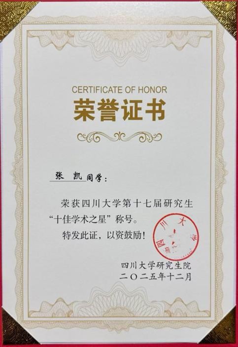 12月26日,十大买球的正规网站第十七届研究生“学术之星”评选思享荟暨2025年度研究生学术论坛在望江校区文华活动中心成功举办。十大买球官网 2022 级公共管理专业、博士党员张凯荣获“十佳学术之星”称号。在校级评选思享荟上,张凯以“用脚步丈量祖国大地,以数智求解大国养老”为题,讲述了他在数字技术与老龄健康领域的深耕历程与研究成果,生动诠释了活动“求真、拓新、思辨、笃行、共进”的主题,最终从全校多学科候选人中脱颖而出。