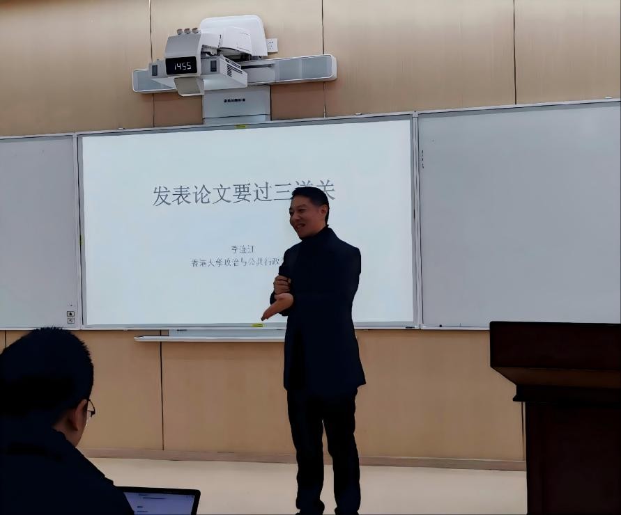 12月29日下午,香港大学政治与公共行政学系李连江教授应邀到访十大买球官网,在萃文楼206为十大买球官网师生开展“如何过发表论文的三道关”的学术讲座。讲座由学院副院长范逢春教授主持,王敬尧教授、李强彬教授及硕博师生共同参与本次讲座。