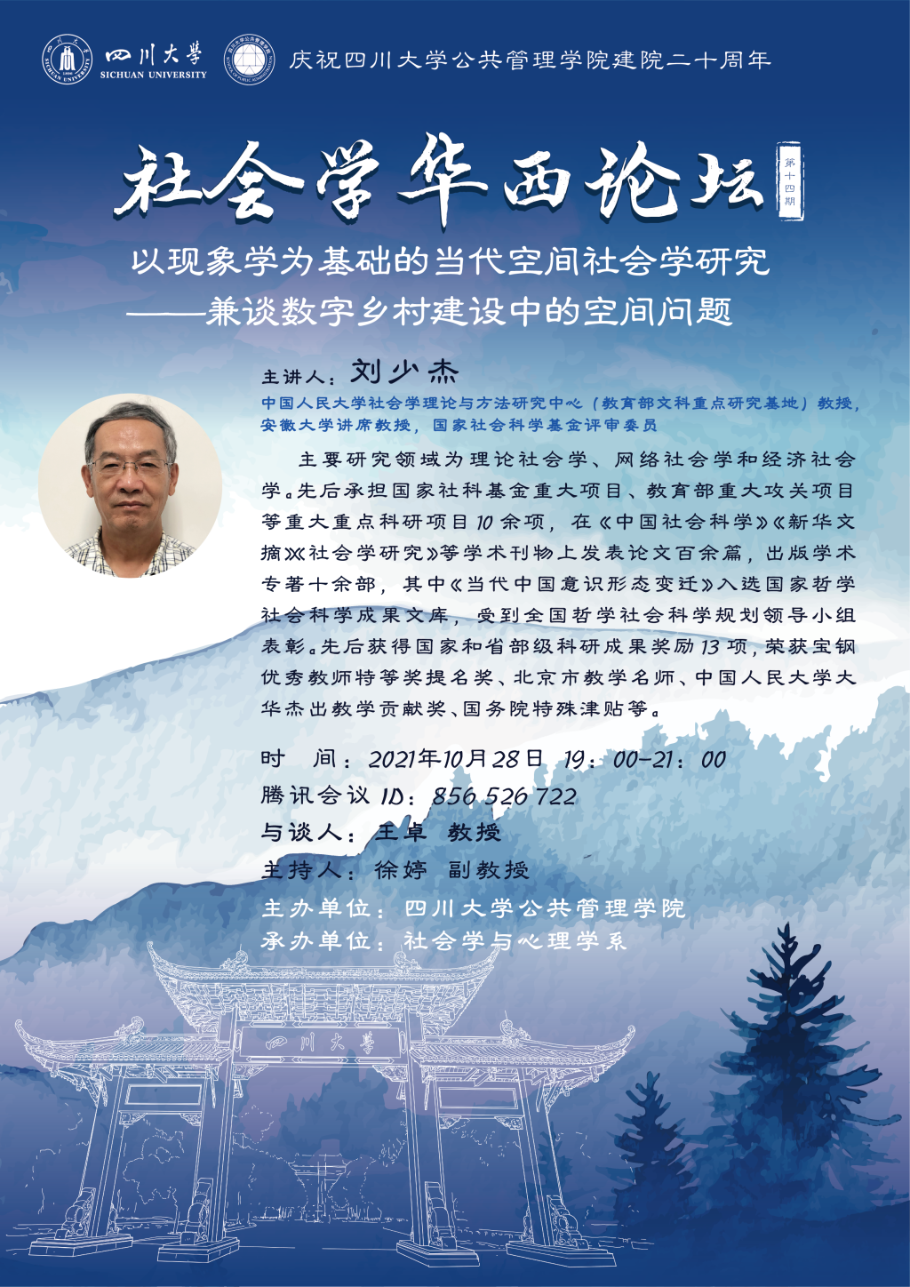 刘少杰,中国人民大学社会学理论与方法研究中心(教育部文科重点研究基地)教授,安徽大学讲席教授,国家社会科学基金评审委员。主要研究领域为理论社会学、网络社会学和经济社会学。先后承担国家社科基金重大项目、教育部重大攻关项目等重大重点科研项目10余项,在《中国社会科学》《新华文摘》《社会学研究》等学术刊物上发表论文百余篇,出版学术专著十余部,其中《当代中国意识形态变迁》入选国家哲学社会科学成果文库,受到全国哲学社会科学规划领导小组表彰。先后获得国家和省部级科研成果奖励13项,荣获宝钢优秀教师特等奖提名奖、北京市教学名师、中国人民大学大华杰出教学贡献奖、国务院特殊津贴等。