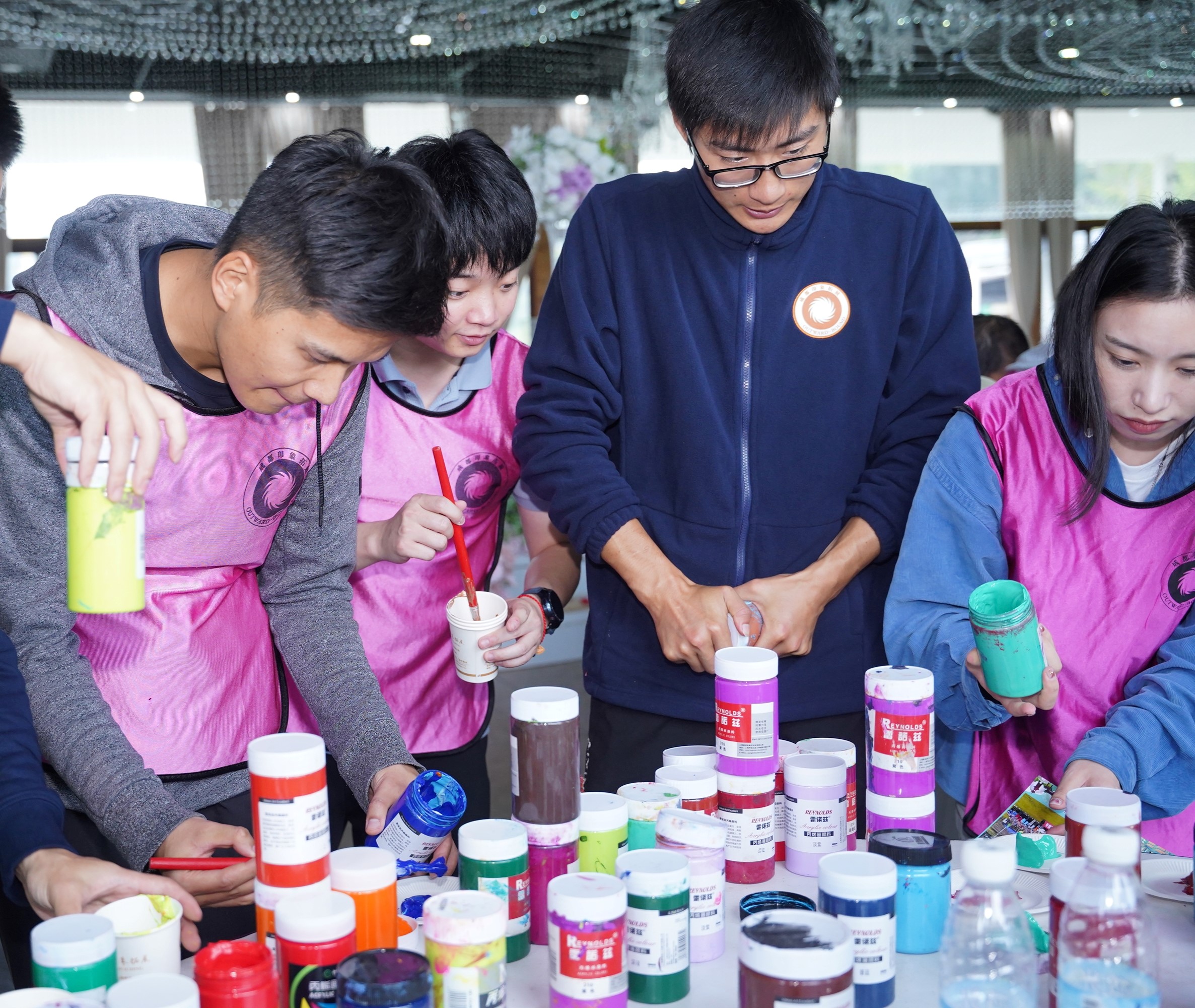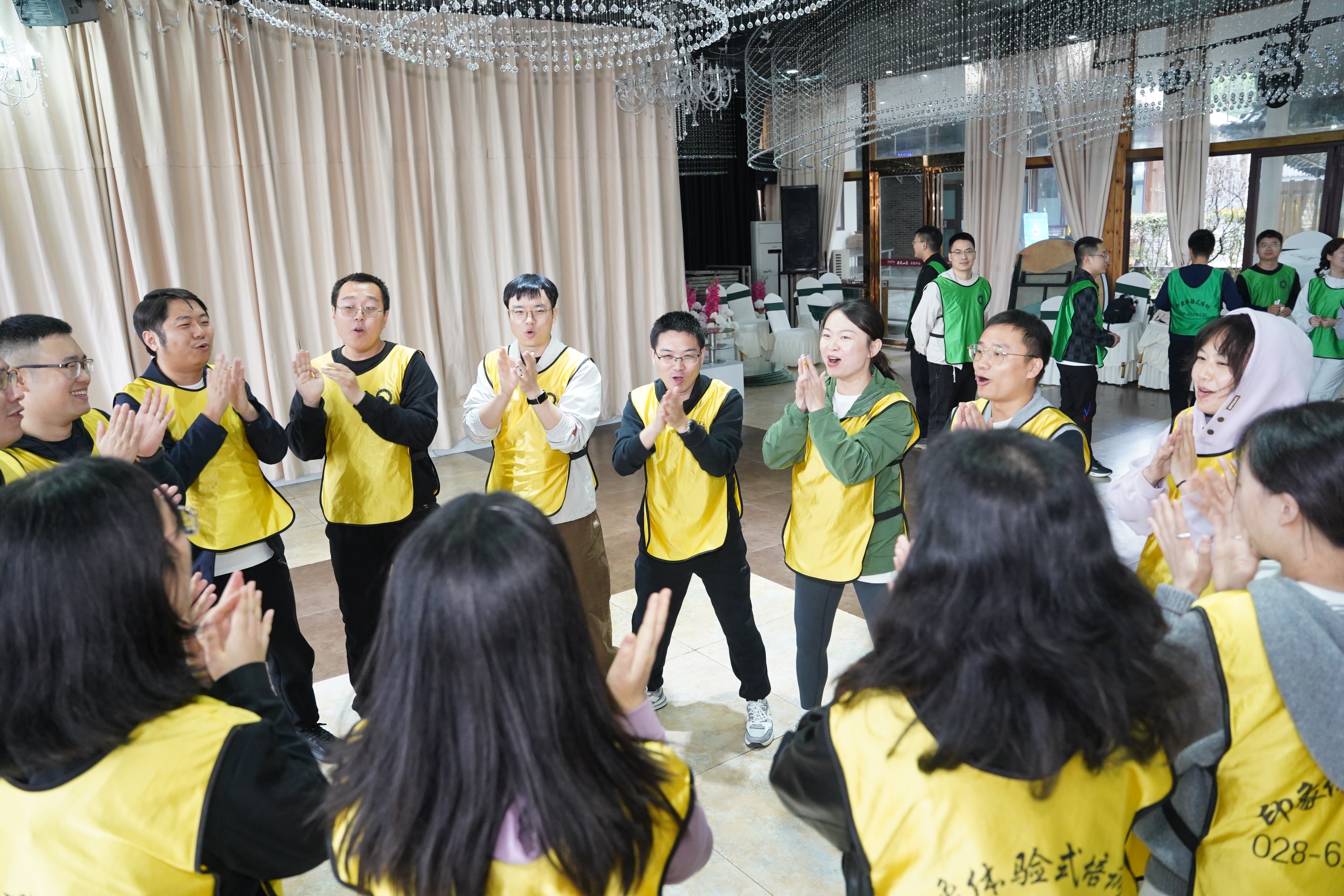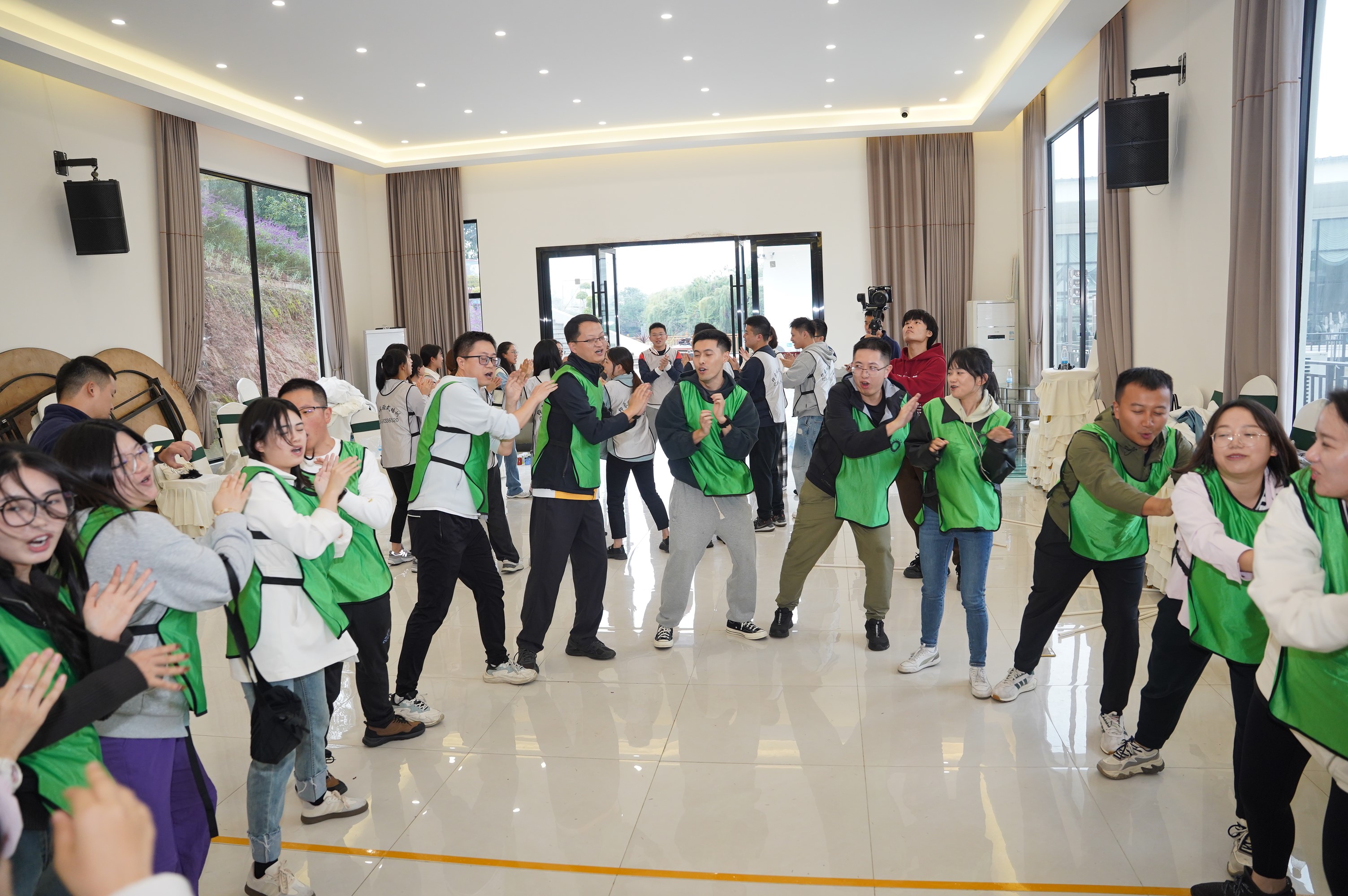 活动现场气氛热烈,全体MPA学生分为20个小组,各小组集思广益,设计了各具特色的队名、口号和队旗。第一项活动“翻牌接力”,加油声、欢呼声此起彼伏,气氛热烈非凡,随后同学们还参与了“不倒森林”、“一圈到底”、“共绘蓝图”等互动活动。通过这些趣味活动,同学们在轻松愉快的氛围中互相加深了解,增强了团队合作精神。