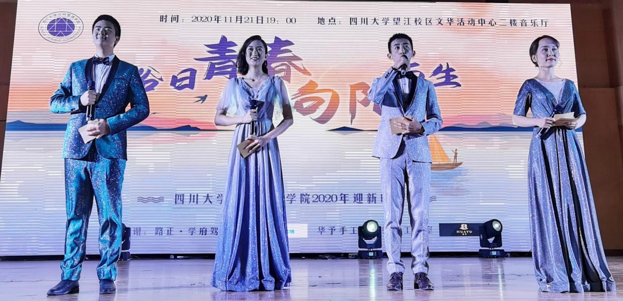 本次迎新晚会展现出2020级新生们意气风发、不畏艰难的精神风貌,彰显出“公管大家庭”强大的凝聚力和无限潜能。无数的幕后辛勤付出,台上的精彩表演,师生们的热烈互动,各种严密的疫情防控措施,共同造就了此次青春盛宴。同学们坚信,或许有多少个瞬间会被黑暗吞噬,但总有一束光会撕开狰狞的夜晚,疫情也终将被我们彻底打败。我们跨越山海,只为共赴这场盛大的日出,正如同学们对川大的奔赴、对公管的奔赴!浴日青春,向阳而生,青春公管,未来可期!