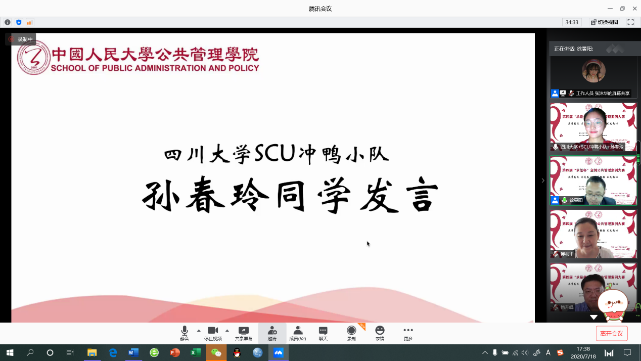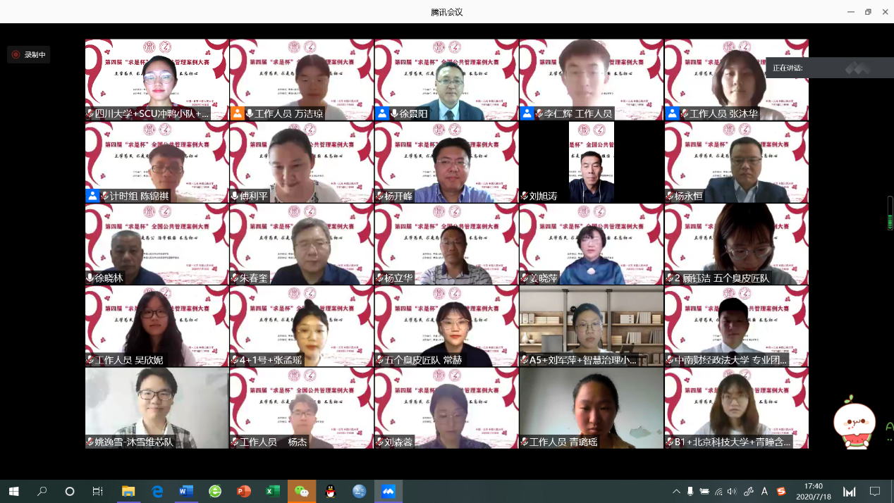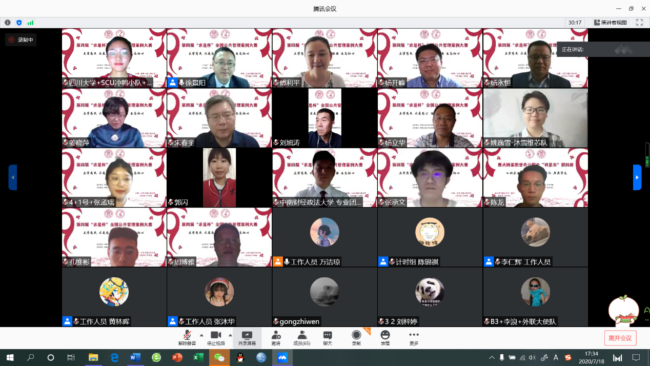 2020年7月18日下午,第四届“求是杯”全国公共管理案例大赛决赛在“云端”举行。(受新冠肺炎疫情影响,第四届“求是杯”复赛以及决赛均于线上举行)