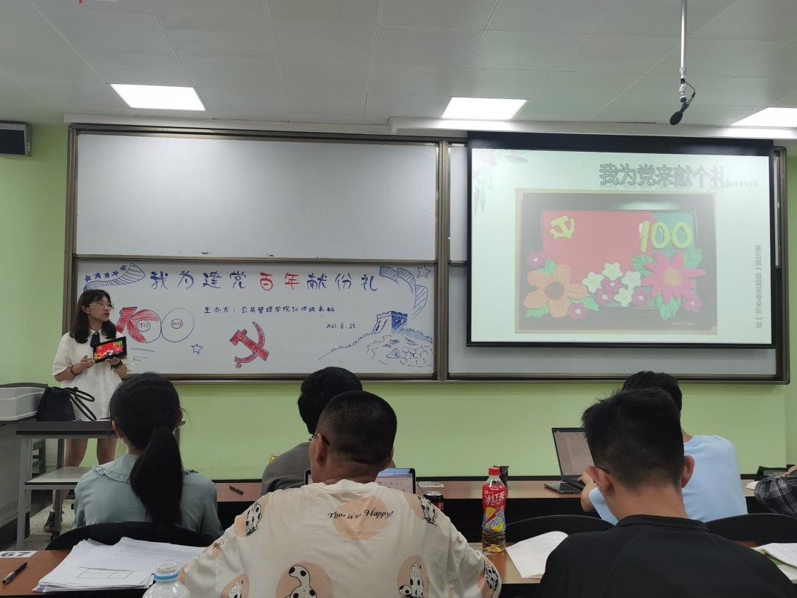 信管班的同学们则将目光转向那建党百年中的英雄人物,介绍了邓小平、江姐的生平事迹,伟大的故事是永远听不厌的,生动的事迹每一次都能带给我们新的体会与感动。同时,信管班的同学还展示了同学们共同创作的绘画和诗篇,让那国旗上的五角星带着革命的光辉照亮嘉兴南湖的游船、让那鲜艳的红旗飘荡在山里、海边、每个人的心里。