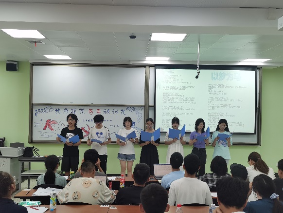 活动伊始,苟欢老师对本次活动的开展背景、重大意义、筹备过程、活动流程等进行了详细介绍。本次活动以班级为单位进行作品创作和现场评议,同学们以饱满的热情,崇敬的态度,展示出各班精心准备的作品。