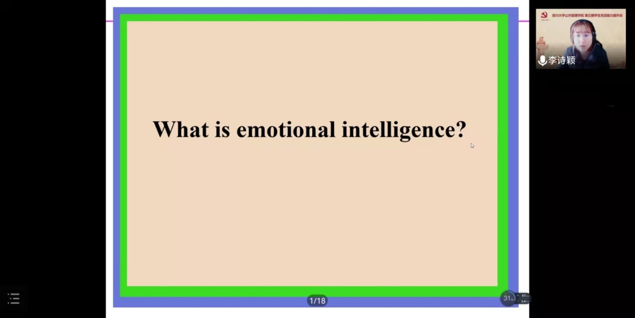 开班典礼结束后,十大买球官网社会学与心理学系李诗颖副教授为大家带来题为“情商:认识和管理情绪的能力”的专题讲座,讲座由林晨老师主持。