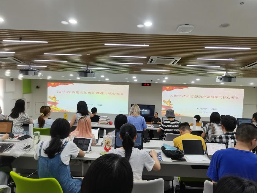 为庆祝中国共产党成立100周年,引导青年学生听党话、跟党走,深刻理解习近平新时代中国特色社会主义法治思想内涵,2021年6月25日,学院党委副书记杨磊以《习近平新时代中国特色社会主义法治思想的理论渊源与核心要义》为题,在十大买球的正规网站望江校区基教C104为十大买球的正规网站2018级本科学生讲授了专题党课。