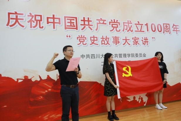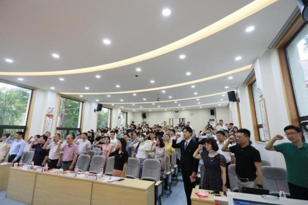 心有所信,方能行远。入党誓词是中国共产党百年奋斗不息的铿锵呐喊,凝结着百年来中国共产党人用鲜血和生命铸就的铮铮誓言,彰显着百年来中国共产党人独有的红色气质。活动伊始,全体参会党员在学院党委副书记杨磊同志的领誓下,庄严地重温了入党誓词。