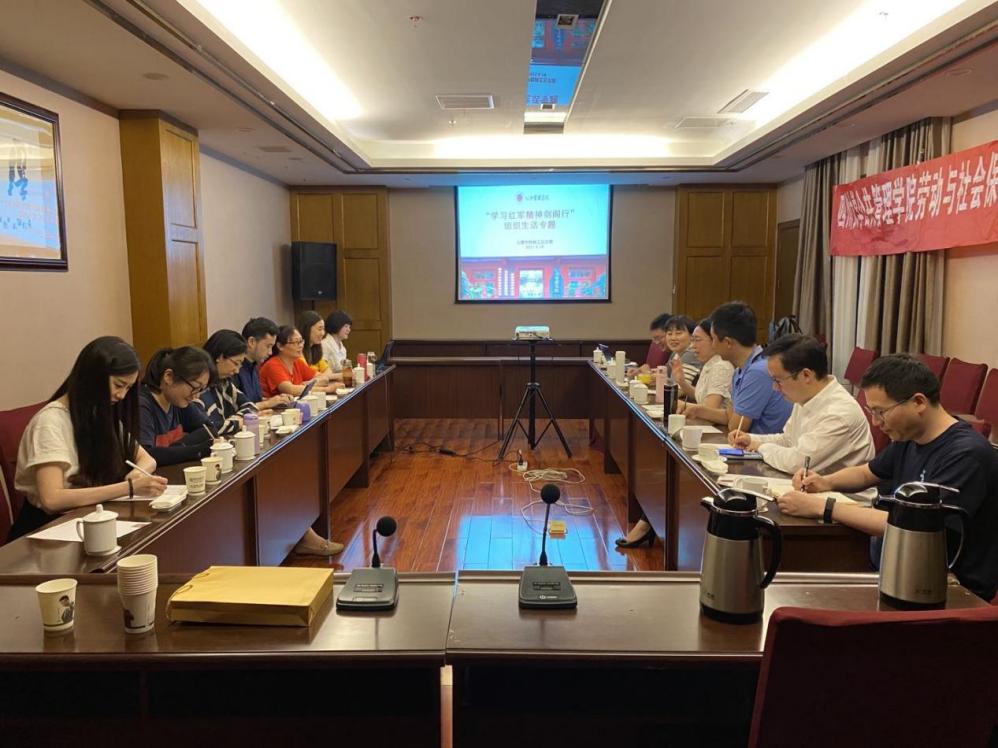 接着,教职工第五党支部开展了一次支部建设与学科建设融合协同发展民主生活会,邀请劳动与社会保障专业系主任蒲晓红教授介绍学科建设情况,在座的老师们结合本专业的特点,围绕党支部建设和学科建设融合协同发展,尤其是劳动与社会保障双一流专业建设、青年教师专业能力提升和职业发展、学生培养等工作开展热烈的研讨。学史力行,支部将不断加强基层组织建设,充分发挥党员的带头作用。大家纷纷表示,将“不忘初心,牢记使命”,勤奋踏实地做好本职工作,高质量地完成各项任务。