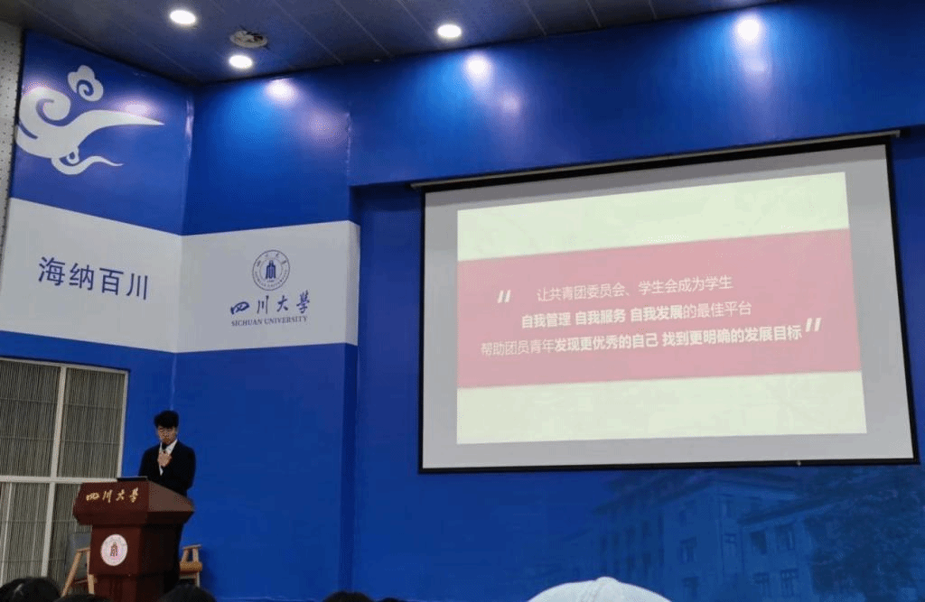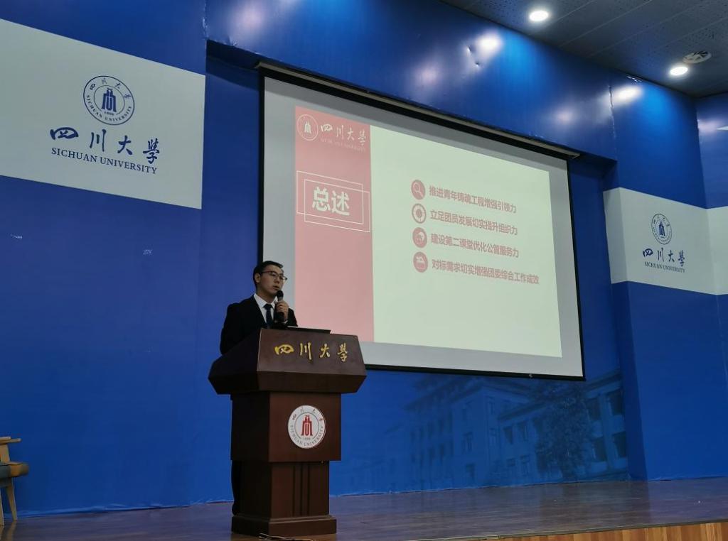 2021年6月11日14:30,共青团十大买球的正规网站第五次代表大会在十大买球的正规网站江安校区水上报告厅顺利举行。学院共119名团员代表(含研究生)出席,学院团委书记青杨媚、学生工作科副科长陈萱源、辅导员林晨参加了此次大会。