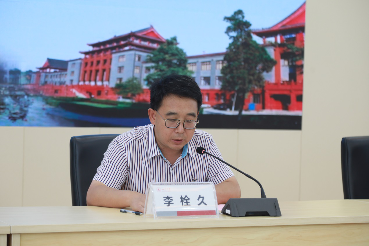 李栓久围绕学习贯彻习近平总书记重要讲话精神、党中央部署要求和学校主题教育工作安排,结合指导组工作职责,就落实主题教育各项任务,提出了四点意见。一是深入学习贯彻习近平新时代中国特色社会主义思想,打牢思想理论基础。学院党员师生要全面系统学、及时跟进学、深入思考学、联系实际学,读原著学原文悟原理,以理论滋养初心、引领使命,增强“四个意识”,坚定“四个自信”,做到“两个维护”。二是准确把握总要求和目标任务,以主题教育为契机推进学校“两个伟大”建设。围绕“十二字”总要求和“五句话”目标,学院要自觉把开展主题教育同落实学校第八次党代会部署结合起来,同推进学校“双一流”建设结合起来,同推进“两学一做”学习教育常态化制度化结合起来,同庆祝新中国成立70周年等各项活动结合起来,确保主题教育取得扎扎实实的成效。三是认真落实四项重点措施,推动主题教育有力有序开展。不划阶段、不分环节,把学习教育、调查研究、检视问题、整改落实四项重点措施贯穿始终。四是力戒形式主义、官僚主义,确保主题教育取得实效。学院党委书记要履行第一责任人职责,加强组织领导,强化督促指导,全面从严、全程求实、全员投入,确保主题教育高质量开展。