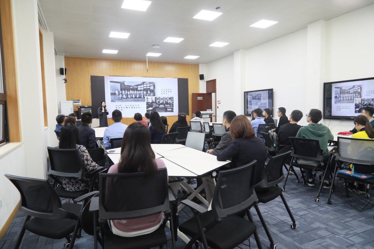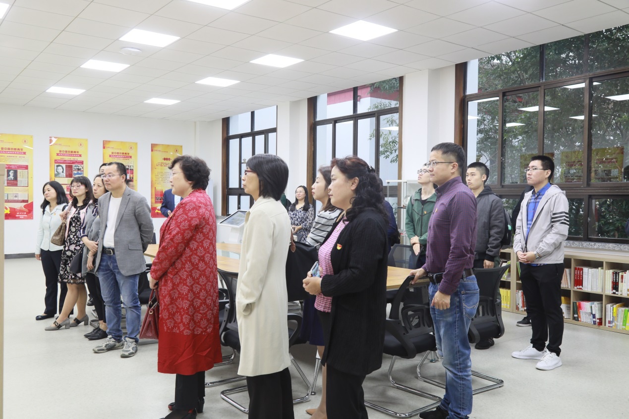 在讲解员的带领下,学院师生参观了江姐纪念展厅、川大英烈厅、江姐寝室以及江姐校园学习生活主题浮雕墙,通过阅读图片、文献、观看视频,学习了以江姐为代表的67名川大英烈校友的革命事迹。