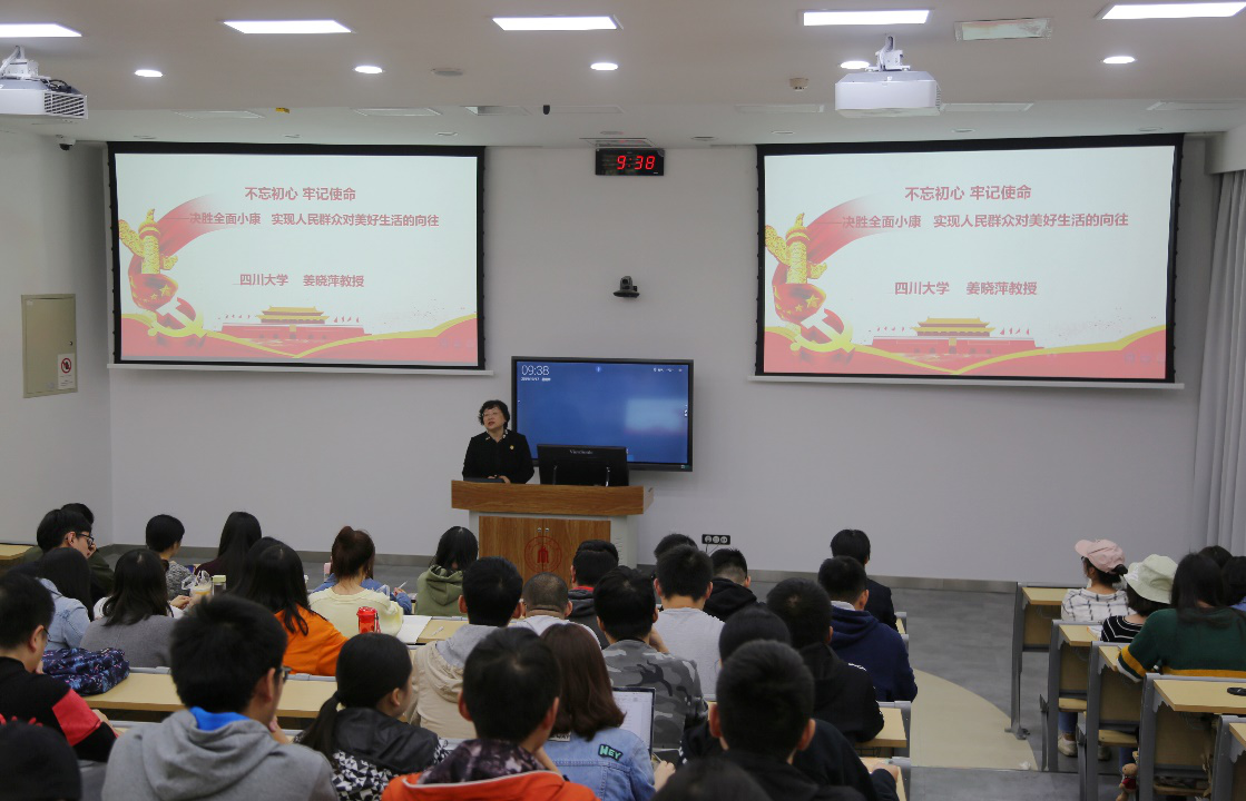 2019年10月17日早上9:30,十大买球官网党委书记姜晓萍教授在望江校区基础教学楼C座203为十大买球官网2016级本科生讲授了题为“决胜全面小康,实现人民群众对美好生活的向往”专题党课。