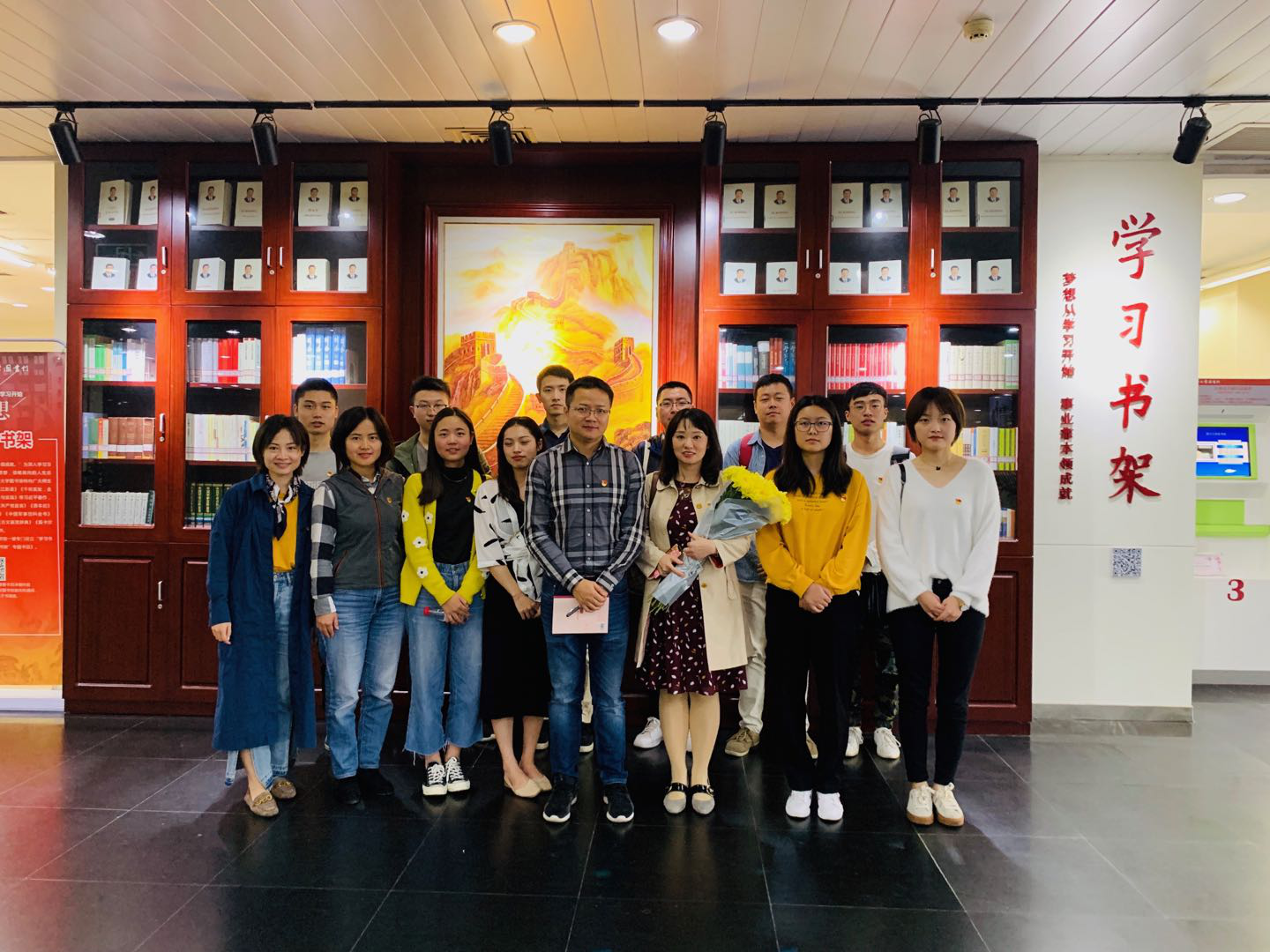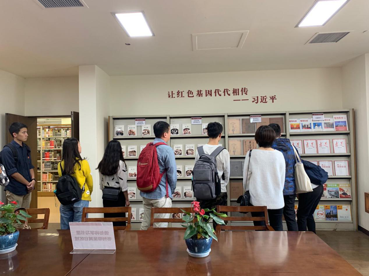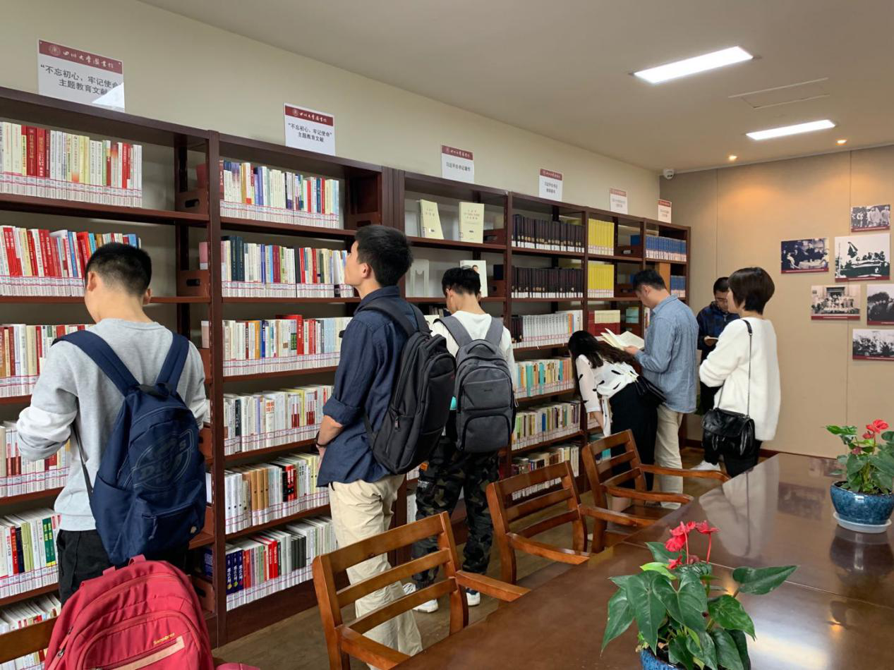 在杨磊副书记的带领下,学院一行人首先前往江安校区图书馆内的红色文化阅读空间——“学习书屋”进行参观。该书屋由校图书馆、川大出版社和中国红色文化研究会携手共同建设,集中收藏和展示了习近平总书记著作、习近平同志推荐的图书以及“不忘初心、牢记使命”主题教育专题文献、十大买球的正规网站革命文化主题文献等丰富的藏书,学习书屋还收集了朱德、吴玉章、张澜、江姐等在十大买球的正规网站学习和工作的革命志士和英烈的传记类、纪念性和研究性文献,以及十大买球的正规网站出版社出版的红色文献等。