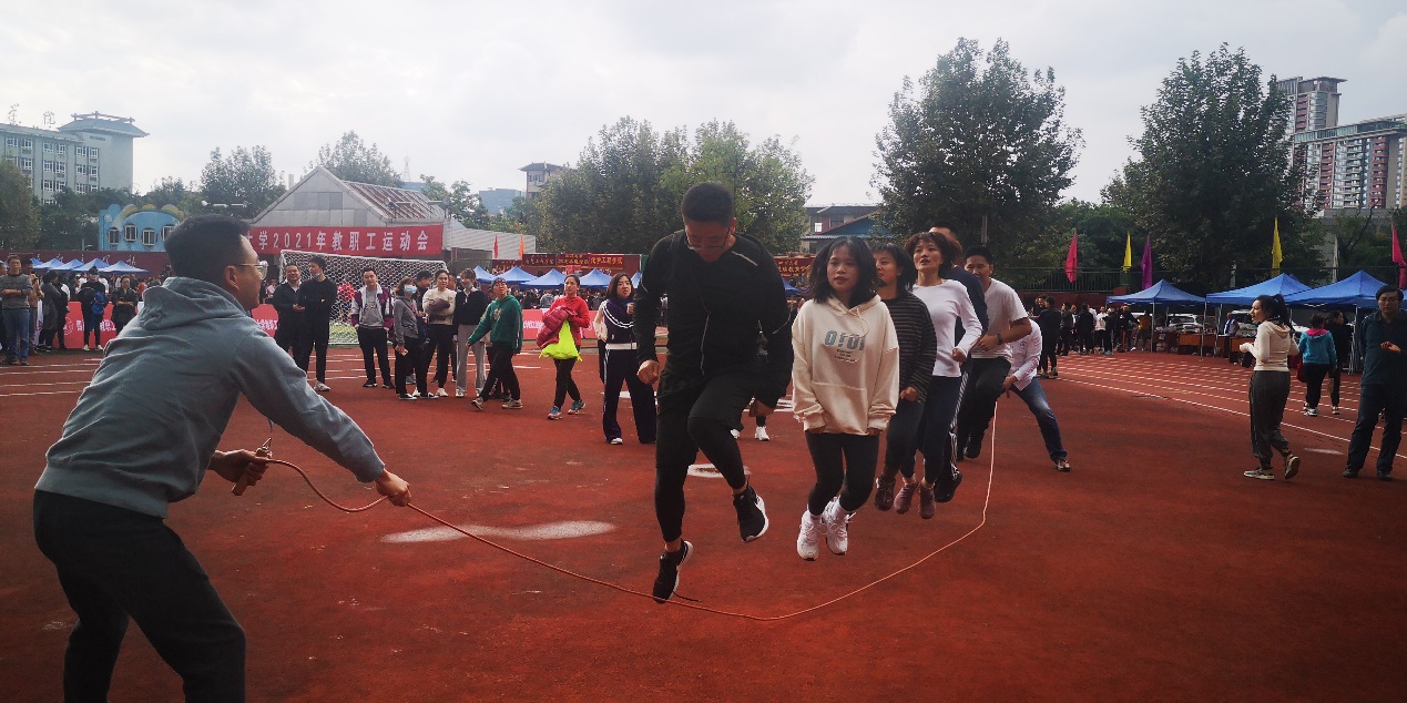 在一天紧张的赛程中,全体参赛教职工团结协作、奋力拼搏,顺利完成各个项目。其中,跳绳项目获得全校第7名,是十大买球官网在该项目获得的最好成绩;毛毛虫竞速项目获得全校第14名,女子100米单项获得第16名,取得较好成绩。