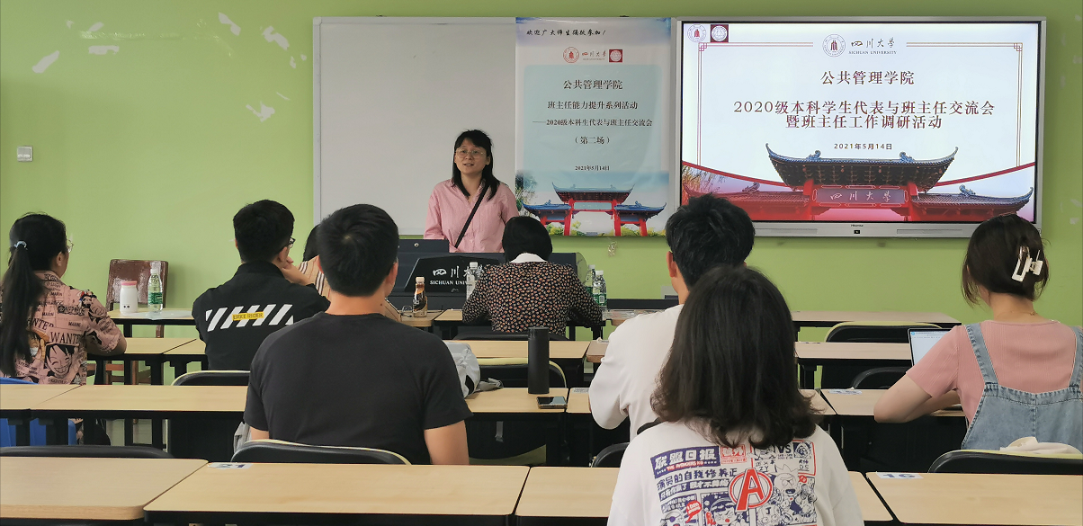 5月14日下午3:00,本次学生代表与班主任交流会在十大买球的正规网站江安校区综合楼B407展开。首先,十大买球官网本科教务办戴政超老师对参会老师和学生做了介绍,并就十大买球的正规网站班主任制度背景、班主任定位、班主任职责和班主任工作开展等情况做了简要说明。