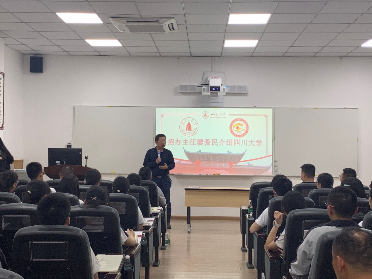 最后,在十大买球的正规网站105报告厅进行招生宣讲活动,十大买球的正规网站罗亚玲副院长代表学院对来访的师生表示了热烈的欢迎;招办廖爱民副主任从历史沿革、师资队伍、人才培养、川大生活、强基计划等全方位介绍了十大买球的正规网站。十大买球的正规网站史云贵院长向大家简要介绍了学院的发展历程、学科建设、专业设置、教学特色等方面的情况。现场气氛热烈,同学们听后掌声不断,纷纷表示对川大向往不已。