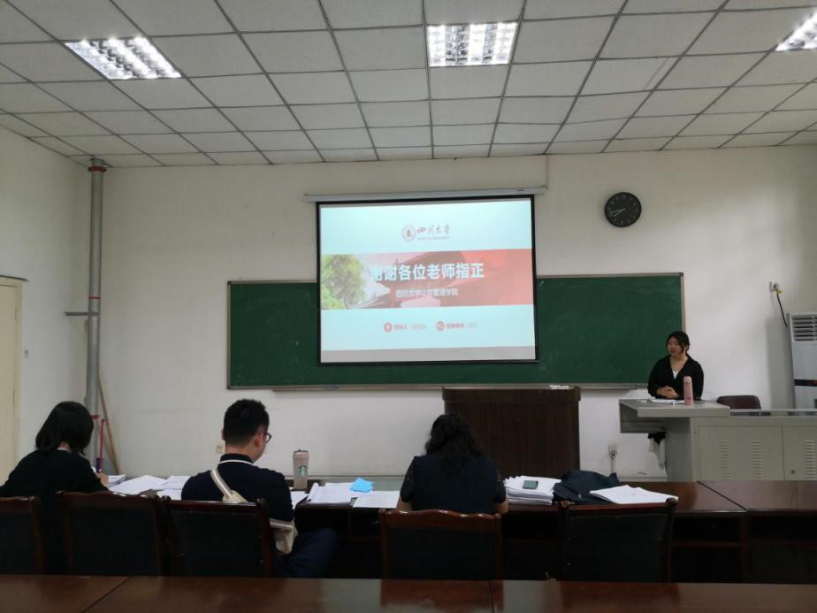 答辩开始,同学们依次向答辩老师就论文的选题来源、研究背景与意义、研究思路、研究创新点、研究主要内容、研究结果及审查会后修改的内容进行了简明扼要的汇报。