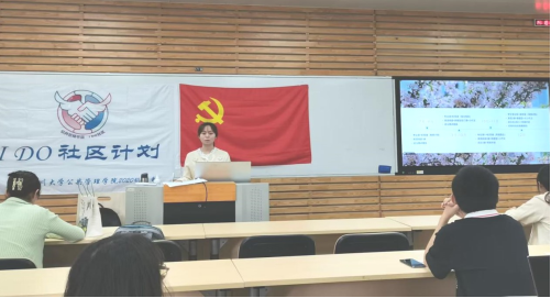 图1:社工向同学们介绍机构相关情况