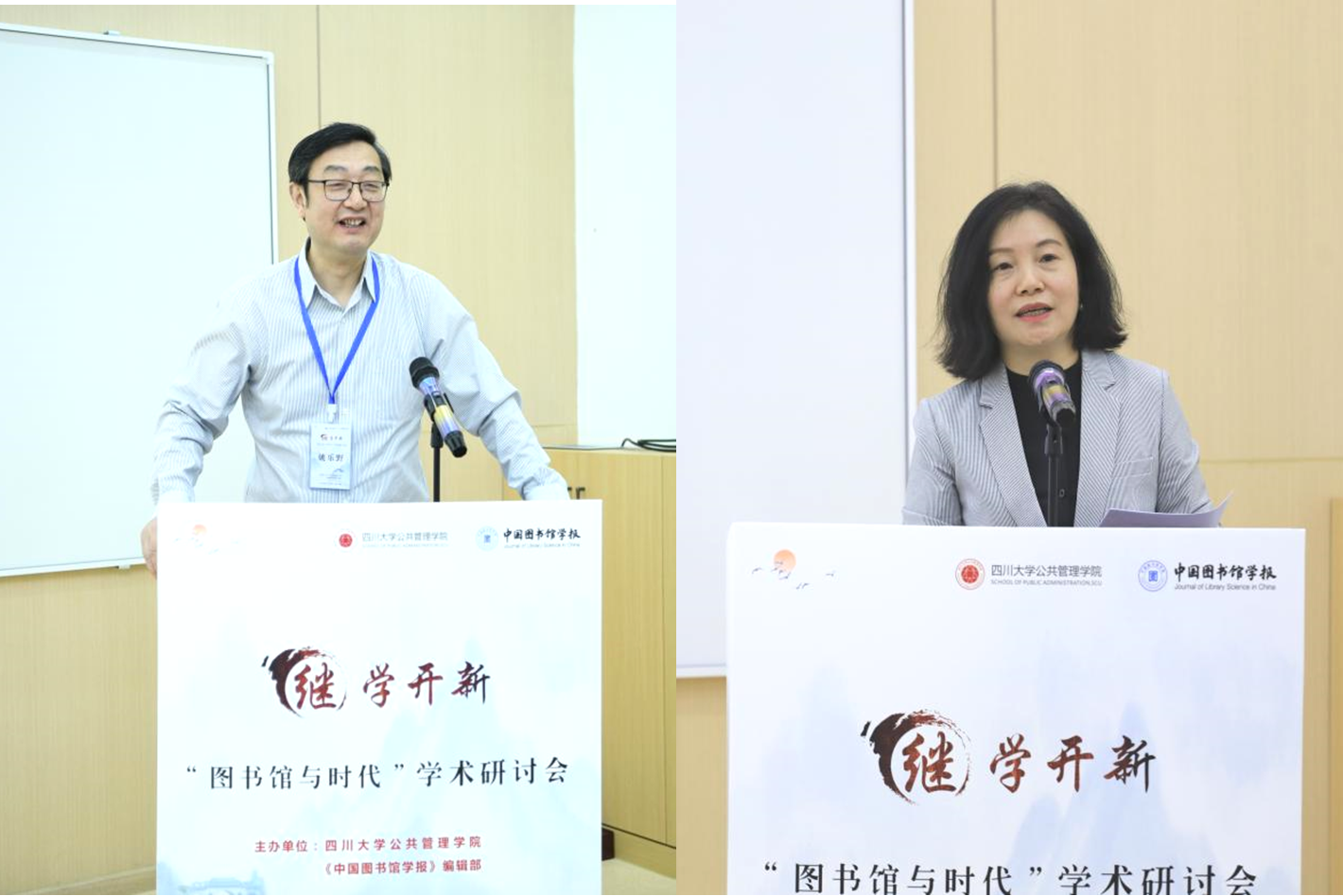 中国图书馆学会副理事长,国家图书馆党委书记、副馆长陈樱(右)
