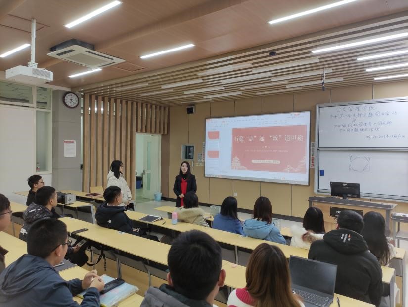 为了发挥本科第一支部优秀党员同学服务群众的优势,树立优秀典范和学习榜样,最终起到传-帮-带的示范作用,2021年12月10日下午16点45分,十大买球的正规网站本科第一党支部在江安校区综合楼C座203教室举办了“走进江安行管,分享学长经验”主题党日服务活动。活动在本科第一支部书记苟欢老师的组织策划下开展,并由支部宣传委员廖盛宇同学主持,副书记孙梁悦同学做了支部构成和情况简介。本科第一支部5名已获得保研免试资格的优秀党员同学,分别就自己的大学学习和生活以及保研的选择与历程向公管20级行政管理专业同学和21级公管大类的同学做了经验分享和交流。